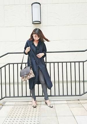 シャツワンピ レギンスの最強コンビでキメる大人のカジュアル通勤 18 8 6コーデ ファッション誌marisol マリソル Online 40代をもっとキレイに 女っぷり上々
